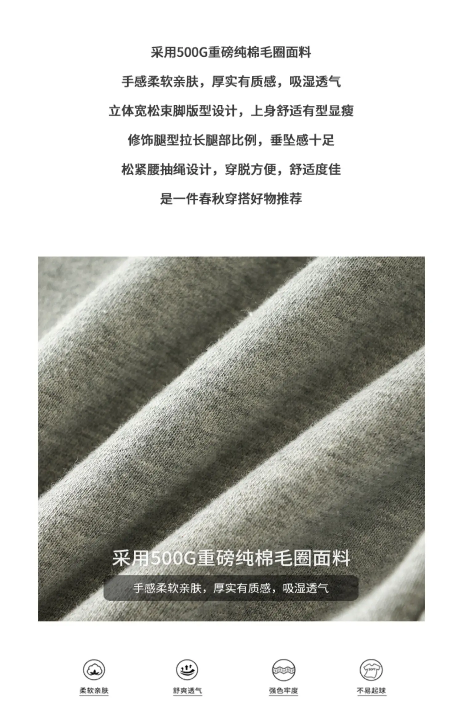DUKEEN 500G Heavyweight Men Sweatpants Spring and Autumn 100% Cotton Loose Casual Sport Jogger Pants Men's Drawstring Trouse
